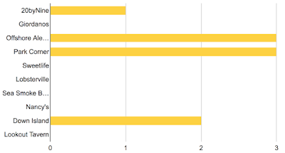 In this round, 20byNine was eliminated and the vote transferred to Park Corner. Now we have a majority winner, but the results don't feel particularly satisfying. It is possible that Giordano's was the second choice of everyone else and that still might be a better outcome.